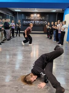В гости наших ребят ждали руководитель студии Черепанова Дарья, хореографы и танцоры популярной студии уличного танца RUSH HOUR DANCE STUDIO , а также специалист молодежного центра — Тепляшина Наталья.