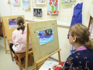 5 декабря в рамках занятий по арт-терапии прошел мастер-класс по рисованию гуашью. Темой для вдохновения стало одно из самых удивительных природных явлений — северное сияние. Участниками стали молодые люди с ограниченными возможностями здоровья. Задача была непростой: передать плавные переходы цвета и магическое свечение ночного неба. Социальный педагог Лилия Каберская шаг за шагом направляла участников, помогая освоить технику и поверить в свои силы.